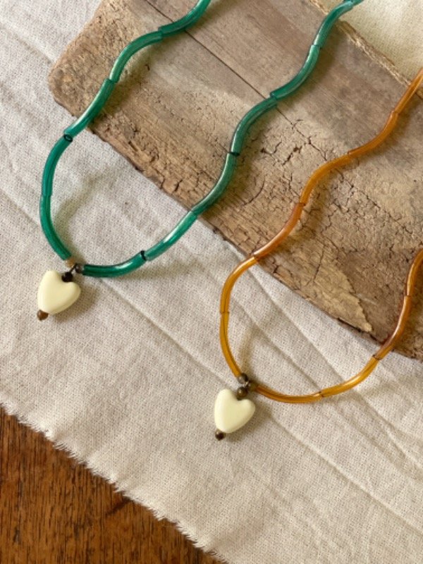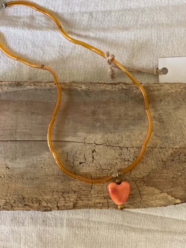 Collar con tubitos de vidrio caramelo