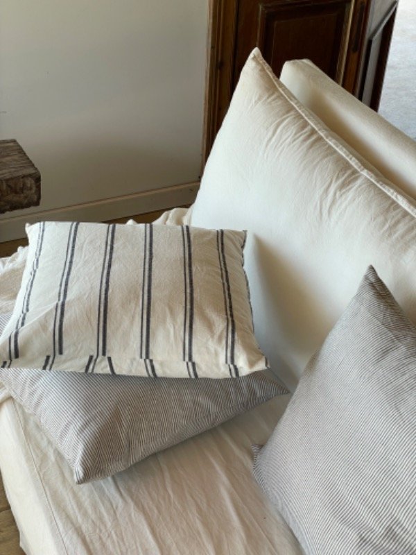 Almohadon con rayas en marino, fondo crudo. Queda uno solito 50x50 con relleno!