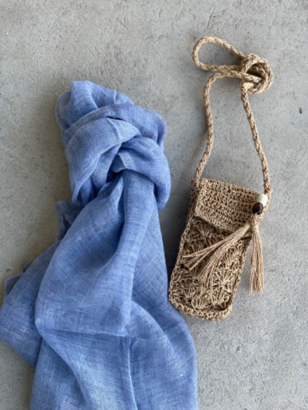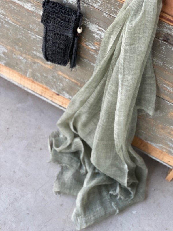 Pañuelo rústico con una trama divina, medio traslúcida con terminación deshilachada!